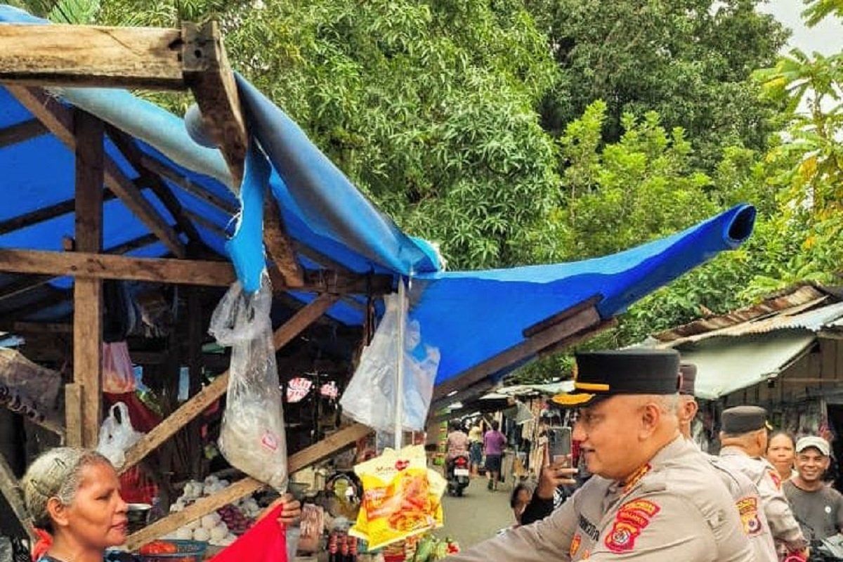 Ambon (ANTARA) - Para pedagang di kompleks Pasar Benteng, Kecamatan Nusaniwe (Kota Ambon) mendapatkan pembagian bendera dan umbul-umbul secara gratis dari Kapolresta Pulau Ambon dan Pulau-Pulau Lease Kombes Pol Yoga Prima Putra bersama sejumlah personel.