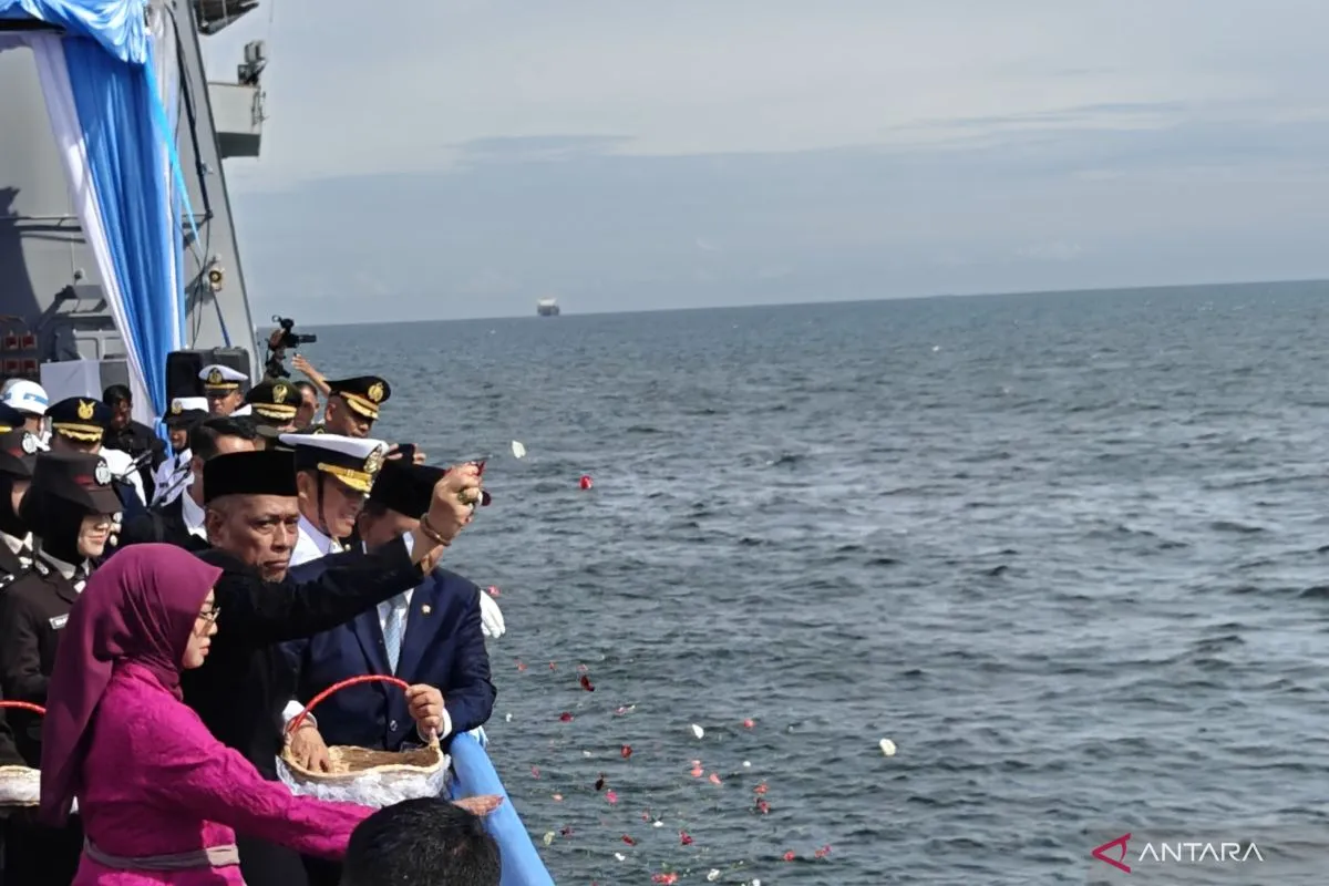 Sejumlah bunga seperti mawar merah itu ditaburkan langsung ke laut sebagai simbol penghormatan kepada pahlawan yang gugur demi mempertahankan kedaulatan bangsa.