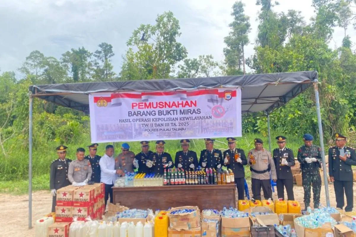 Ternate (ANTARA) - Kepolisian Daerah (Polda) Maluku Utara melalui Polres Pulau Taliabu memusnahkan ribuan liter minuman keras berbagai jenis hasil operasi kepolisian wilayah triwulan III dan IV tahun 2025.