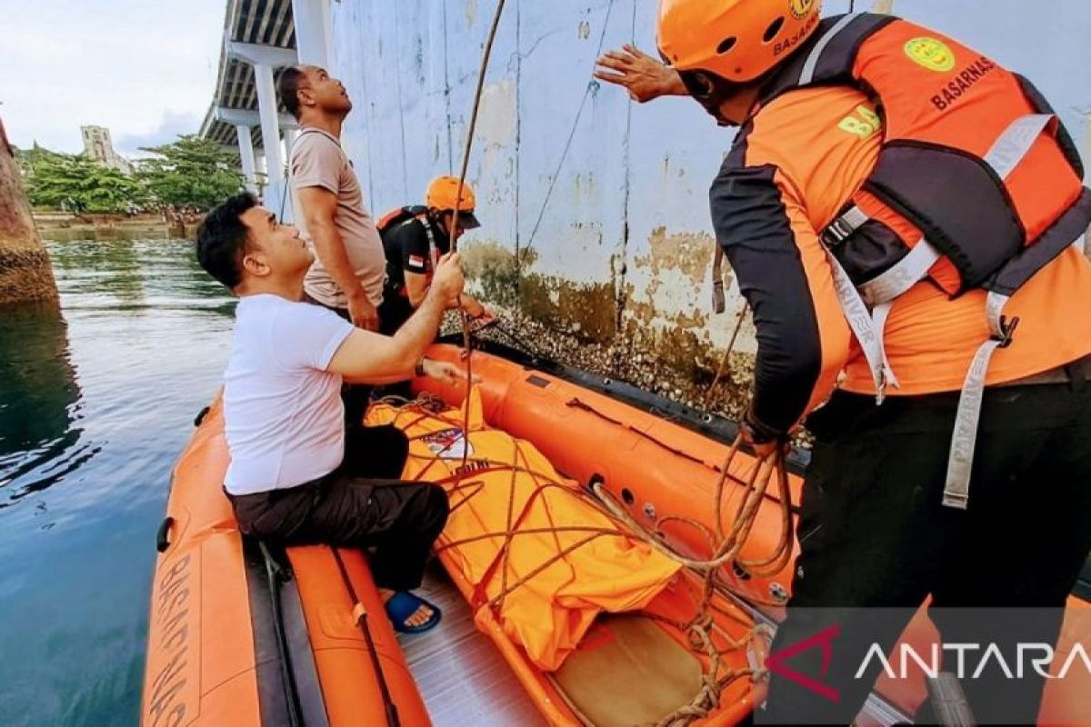 Ambon (ANTARA) - Kantor Pencarian dan Pertolongan Basarnas Ambon, Maluku bersama tim SAR gabungan dan Dokkes Polda Maluku mengevakuasi jasad perempuan muda dari Jembatan Merah Putih.