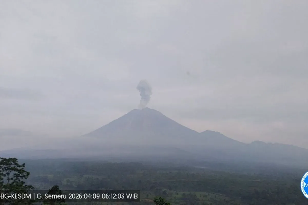 Gunung Semeru kembali erupsi pada pukul 04.30 WIB dengan tinggi kolom letusan teramati sekitar 800 meter di atas puncak dan kolom abu teramati berwarna putih hingga kelabu dengan intensitas tebal ke arah timur laut.