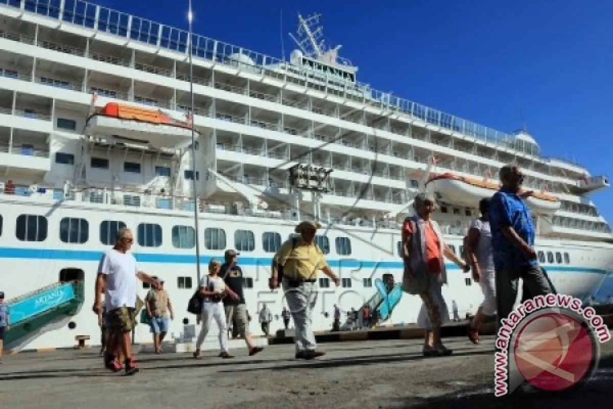 1Sejumlah wisatawan yang menggunakan kapal pesiar MS Artania tiba Pelabuhan Yos Sudarso, Ambon, Maluku, Minggu (28/2). Kapal pesiar berbendera Bermuda itu membawa 1.200 wisatawan mancanegara. Pelabuhan Ambon dan Banda termasuk dua pelabuhan di Indonesia yang disiggahi kapal dengan panjang 231 meter itu. Sebelumnya MS Artania menyinggahi Selandia Baru, Australia dan Papua Nugini serta akan melanjutkan perjalanan menuju Filipina dan Taiwan. ANTARA FOTO/izaac mulyawan/nz/16.