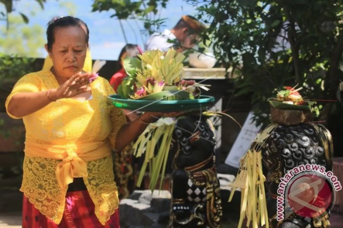 Umat Hindu menyiapkan sesajen saat persembahyangan Hari Raya Saraswati di Pura Siwa Stana Giri, Ambon, Maluku, Sabtu (25/6). Hari Raya Saraswati yaitu hari turunnya ilmu pengetahuan yang diperingati dengan melakukan persembahyangan bersama di Pura untuK mensyukuri sekaligus memohon agar ilmu pengetahuan yang ada dapat bermanfaat untuk kesejahteraan umat manusia. ANTARAFOTO/izaac mulyawan/aww/16.