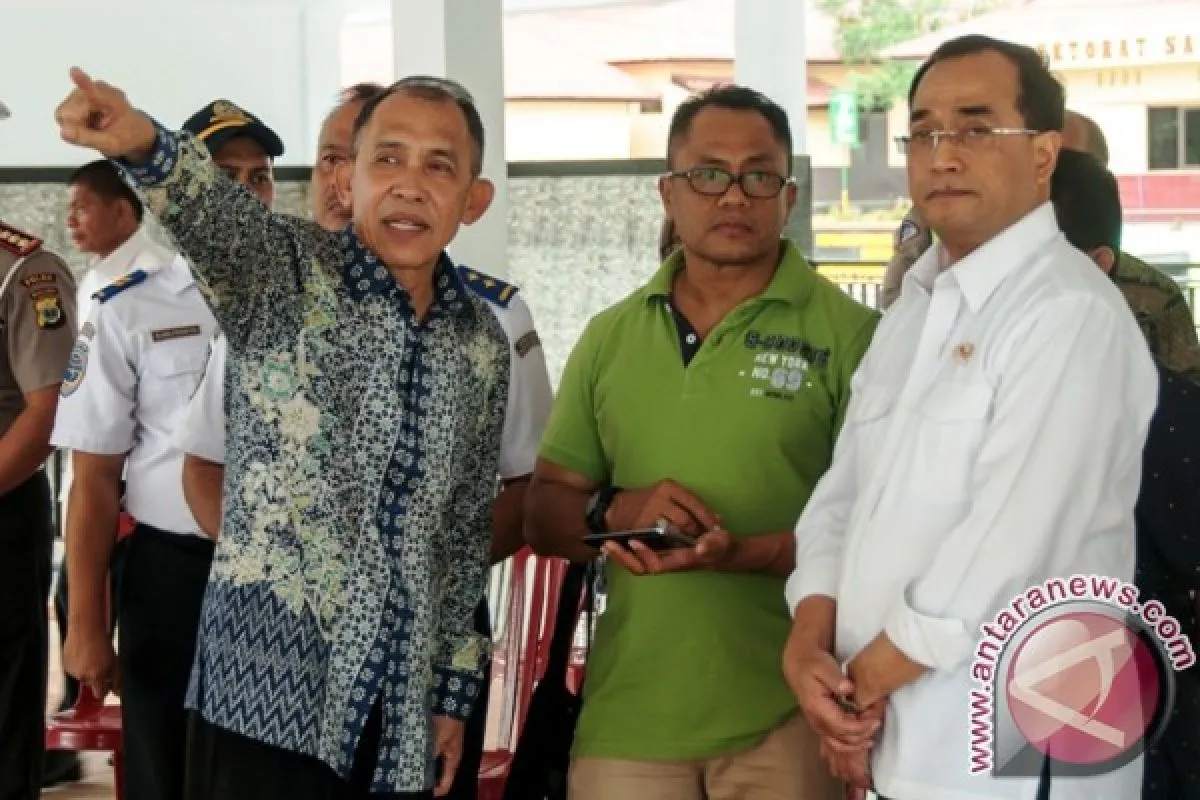 1Menteri Perhubungan (Menhub) Budi Karya Sumadi (kanan) mendengarkan penjelasan dari Gubenur Maluku Said Assagaff (kiri) yang didampingi Kepala Dinas Perumahan dan Kawasan Permukiman Provinsi Maluku Kasrul Selang (tengah), terkait kesiapan penataan lokasi puncak Hari Pers Nasional (HPN) 2017, di Lapangan Kepolisian Daerah (Polda) Maluku, Ambon, Provinsi Maluku, Sabtu (4/2). Kunjungan Menhub ke Ambon dalam rangka memastikan kesiapan obyek-obyek yang akan dikunjungi Presiden Joko Widodo pada puncak HPN 2017 tanggal 9 Februari nanti. ANTARA FOTO/Embong Salampessy/17.