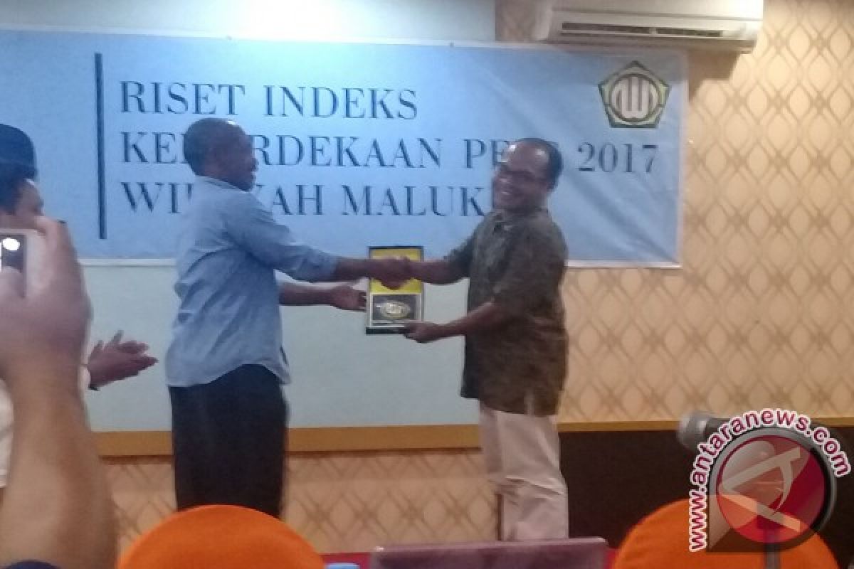1Dewan Pers bekerja sama dengan Universitas Darusalam menyelenggarakan FGD tentang kemerdekaan pers di provinsi Maluku di Ambon, Sabtu (26/8). Acara dibuka dengan pertukaran cinderamata antarkedua penyelenggara acara.
