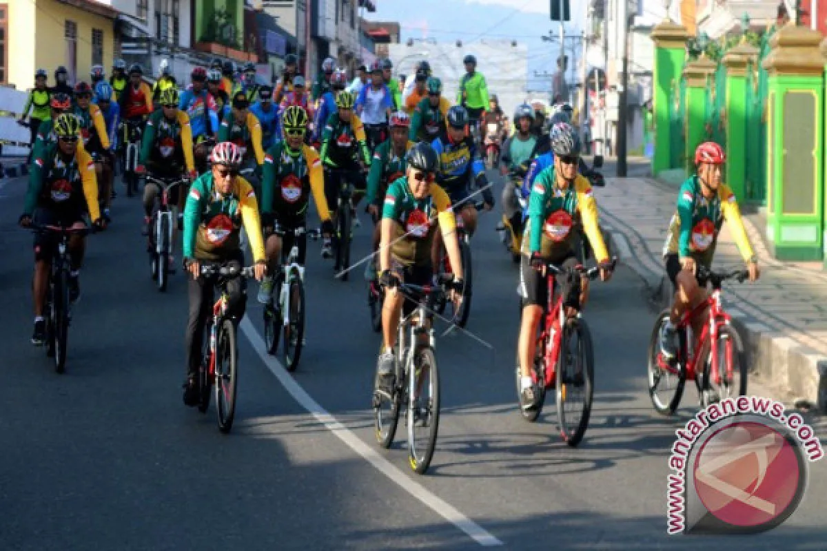Komandan Korps Brimob Polri Irjen Pol Murad Ismail (kedua kiri) mengikuti Fun Bike HUT ke-72 Brimob Polri di Ambon, Maluku, Minggu (5/11). Kegiatan itu diikuti personel Polri, TNI serta masyarakat penggemar olahraga bersepeda. ANTARA FOTO/izaac mulyawan/aww/17.